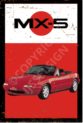 Aluminium bord van de Mazda MX5 NA. Geweldige decoratie voor elke kamer of garage. Geweldig cadeau voor Mazda MX-5-fans.